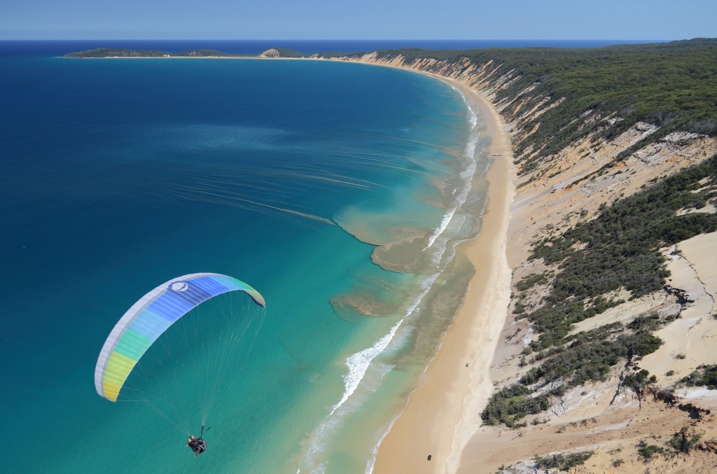 The Gympie region is few places in the world that offer visitors the ability to take flight on a tandem paraglider. Consisting of a giant hollow fabric wing resembling a parachute, a paraglider is foot-launched and has no engine, using thermals to rise far above the landscape to provide serene and silent views.